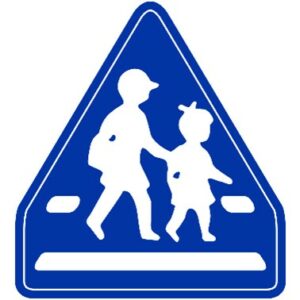 児童・生徒の通行が特に多い区間であることを示す「注意喚起の標識」です。